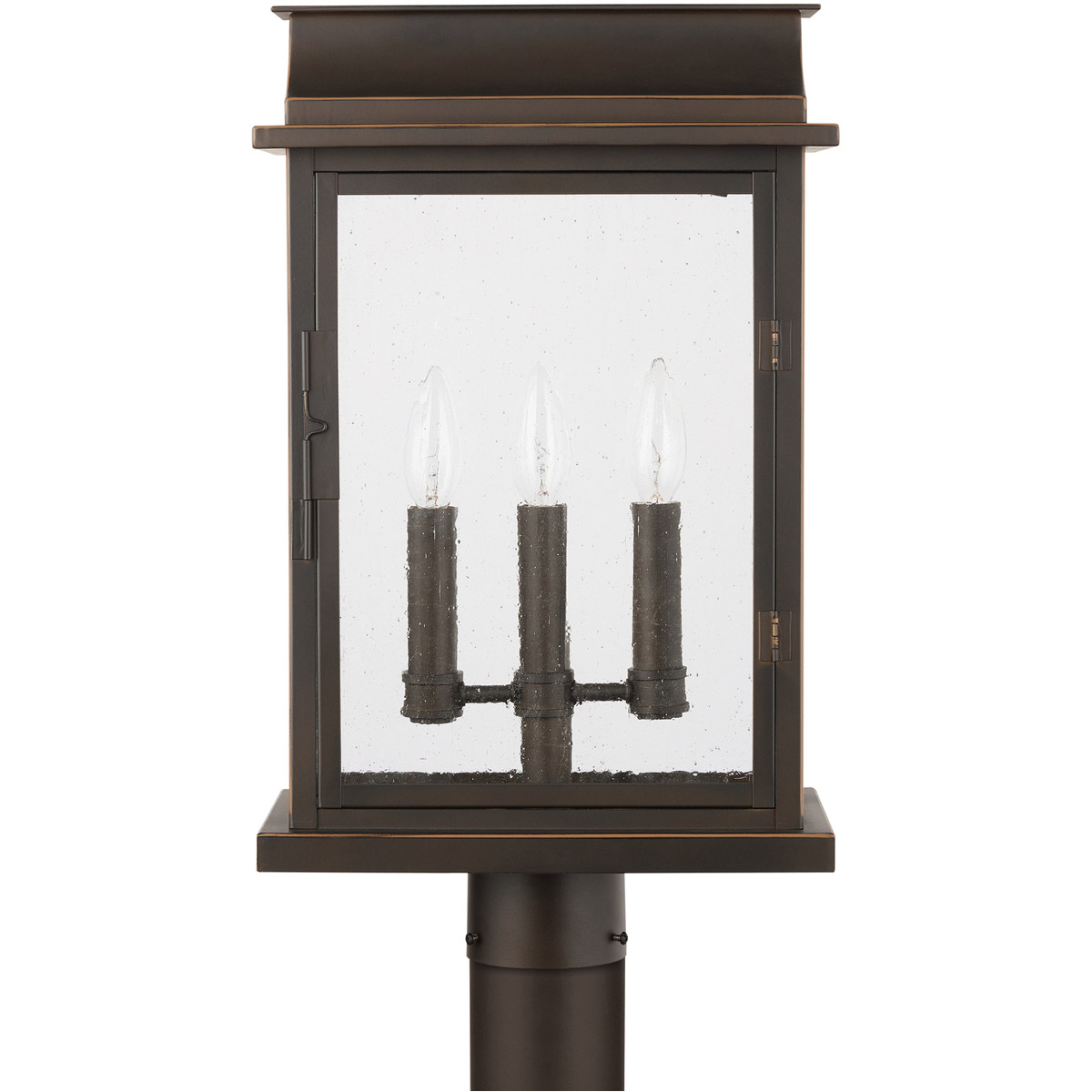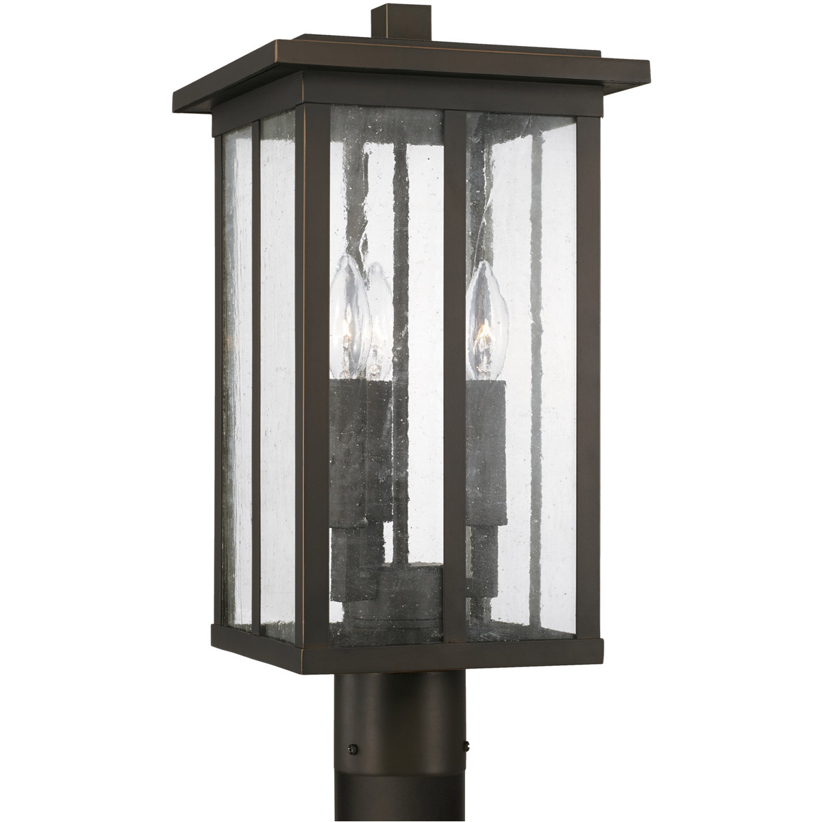 Larson 1 Light 18.75 inch Oiled Bronze Post Lantern, Clear Hammered Glass